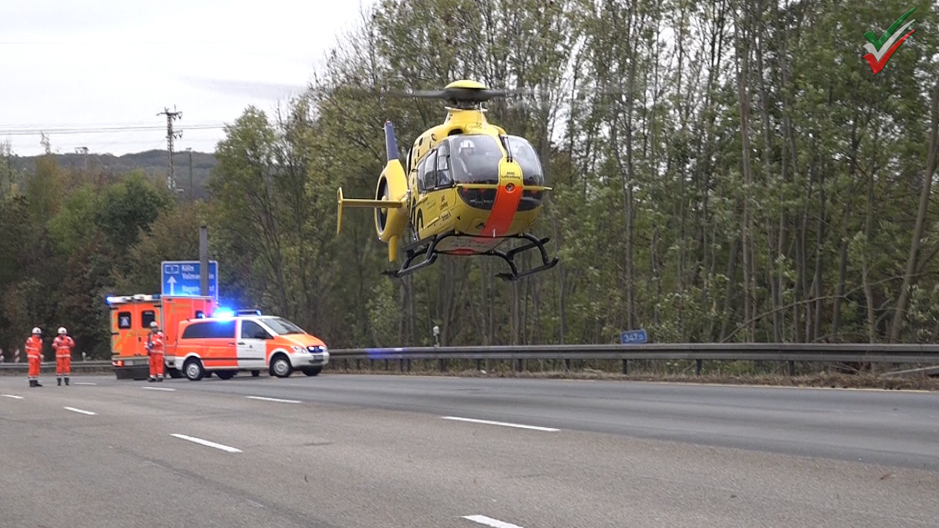 Der 54-jährige Pkw-Führer wurde in seinem Pkw eingeklemmt und verstarb noch am Unfallort, der 49-Jährige wurde leicht verletzt in ein Krankenhaus geflogen. Die Richtungsfahrbahn Köln wurde für die Dauer der Unfallaufnahme und Bergungsmaßnahmen gesperrt, der linke Fahrstreifen war ab 17:44 Uhr, die komplette Richtungsfahrbahn ab 18:29 Uhr wieder frei.